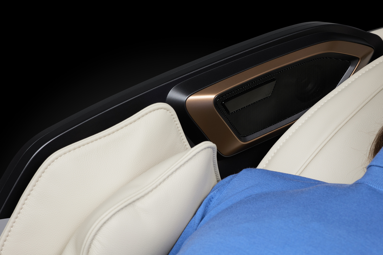 Prime Robo es un sillón de masaje moderno con conectividad Bluetooth. Esto permite conectarlo fácilmente a dispositivos móviles, reproduciendo la música preferida directamente a través de los altavoces integrados en la parte superior de los brazos del sillón. Esta funcionalidad aumenta la experiencia de relajación, sincronizando los sonidos con la terapia, transformando cada sesión en un momento personalizado, agradable y totalmente reconfortante.