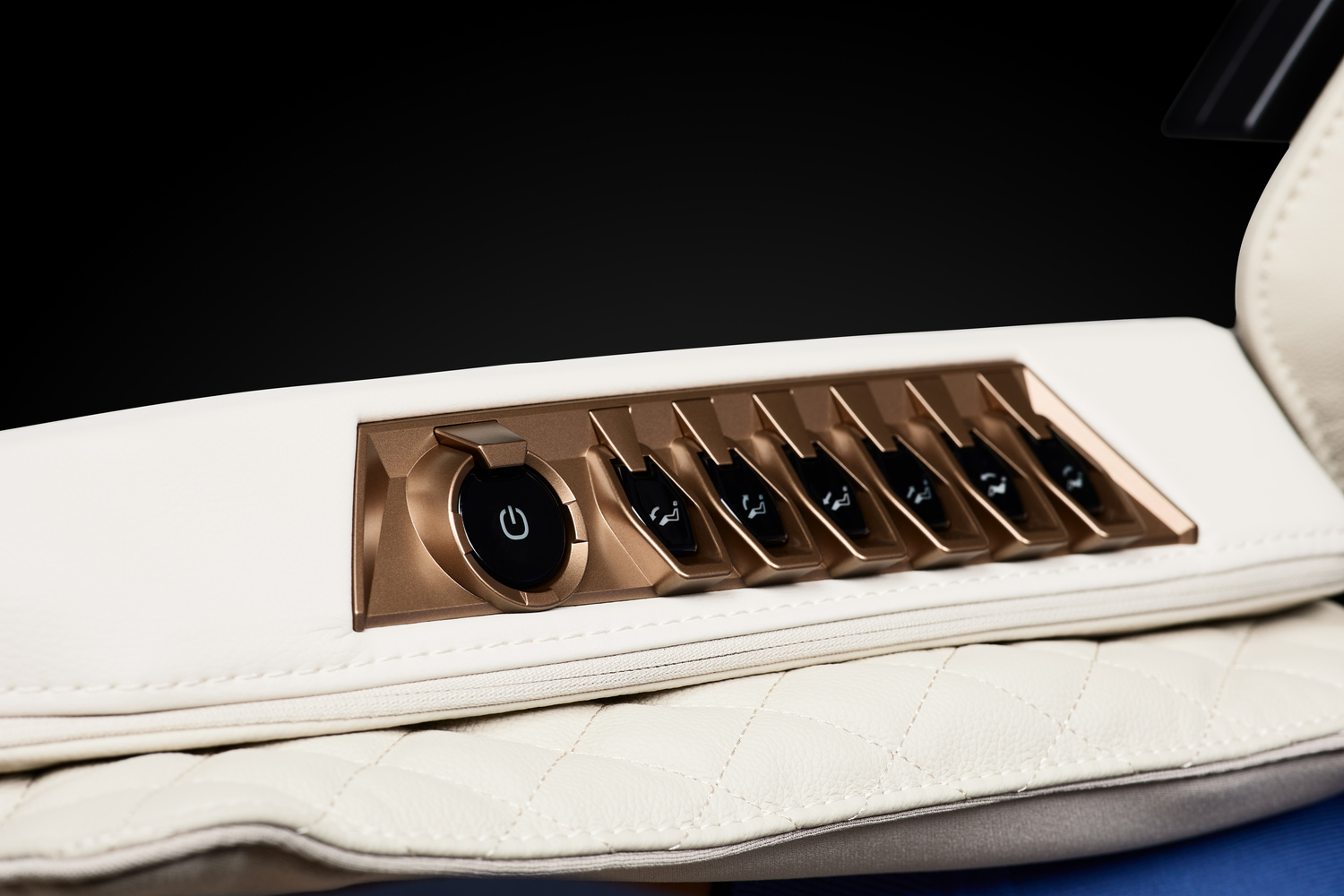 La tablet táctil integrada facilita el control completo del sillón Prime Robo, permitiendo la selección rápida de programas, el ajuste de la intensidad y la modificación de las posiciones de inclinación del sillón. La interfaz intuitiva transforma la experiencia del usuario, ofreciendo confort, máxima personalización y acceso sencillo a todas las funciones avanzadas del sillón. Para un acceso rápido, también existe la posibilidad de utilizar los controles disponibles en el reposabrazos derecho del sillón.